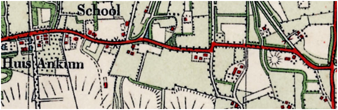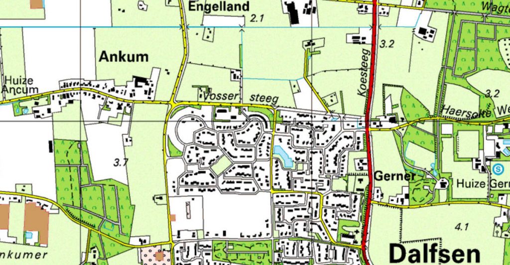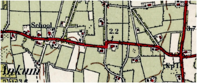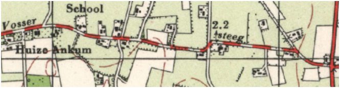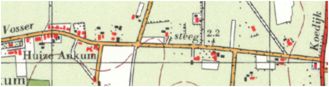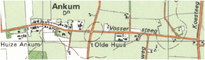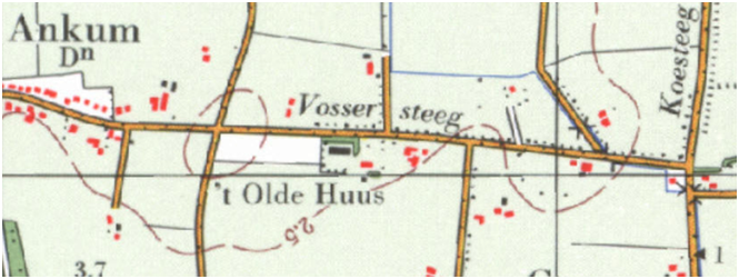 Ca 1964 met de ruilverkaveling is de Vossersteeg rechtdoor getrokken en liep niet meer direct langs ’t Olde Huus.
