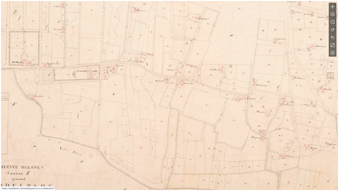 De kaartjes volgens de Topotijdreis van de Vossersteeg met de knik in de weg (Snellen hoek)
